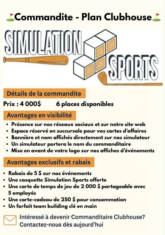 Devenez Commanditaire Clubhouse chez Simulation Sports Laurentides